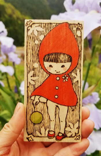 木の板にペン型の焼きゴテで焦げ目により絵を描くよ🎵