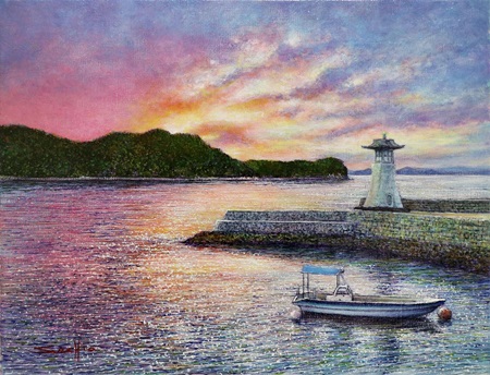 御手洗を拠点に活動する画家田中佐知男による光あふれる油彩画の展示と公開制作。